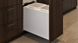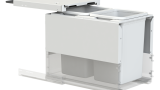 • Active Lid — Hidden from sight at the top of the bin inside the cabinet and drops down to close over the buckets when the bin is closed. The motion of the lid is synchronised with the opening and closing action of the drawer, which lets you keep your hands free to simply drop waste into the bin.