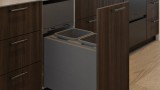 • Active Lid — Hidden from sight at the top of the bin inside the cabinet and drops down to close over the buckets when the bin is closed. The motion of the lid is synchronised with the opening and closing action of the drawer, which lets you keep your hands free to simply drop waste into the bin.