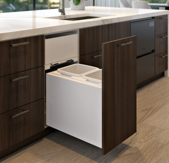 • Push to open — compatible with Blum Servodrive (electronic push to open) and Blum Tip-on-blumotion (manual push to open) systems. Simply bump on the door front and the bin will open.