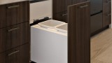• Active Lid — Hidden from sight at the top of the bin inside the cabinet and drops down to close over the buckets when the bin is closed. The motion of the lid is synchronised with the opening and closing action of the drawer, which lets you keep your hands free to simply drop waste into the bin.