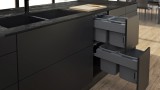 • Active Lid — Hidden from sight at the top of the bin inside the cabinet and drops down to close over the buckets when the bin is closed. The motion of the lid is synchronised with the opening and closing action of the bin, which lets you keep your hands free to simply drop waste into the bin.